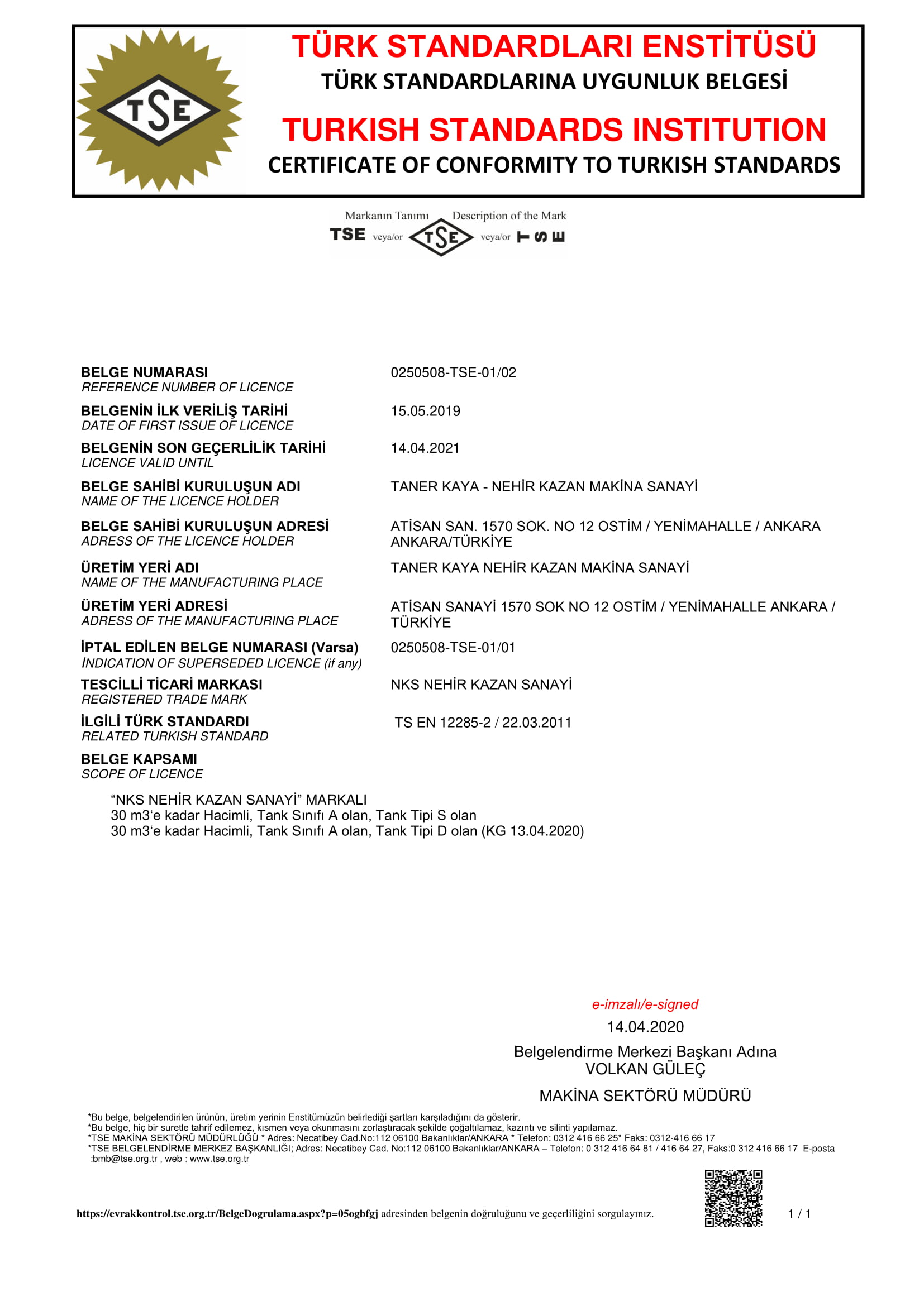 TS EN 12285 - 1